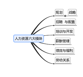 人力資源管理六大模塊,是通過模塊劃分的方式對企業(yè)人力資源管理工作所涵蓋的內(nèi)容進行的一種總結(jié)。具體是指:人力資源規(guī)劃、招聘與配置、培訓(xùn)與開發(fā)、績效管理、薪酬福利管理、勞動關(guān)系管理。