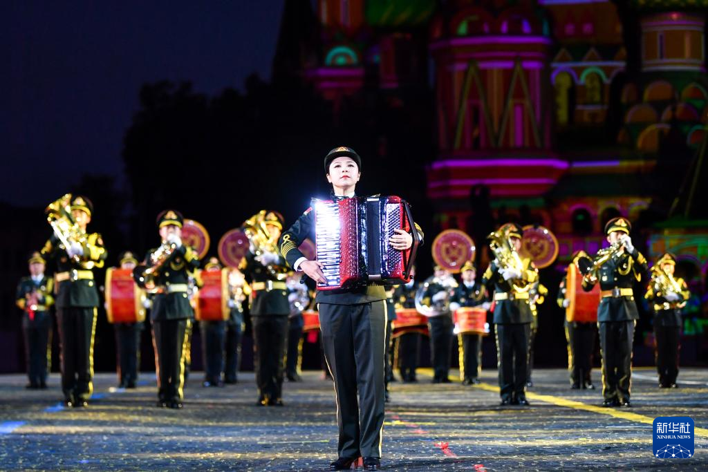 8月23日,在俄羅斯首都莫斯科,中國人民解放軍儀仗司禮大隊(duì)軍樂團(tuán)在軍樂節(jié)上表演。