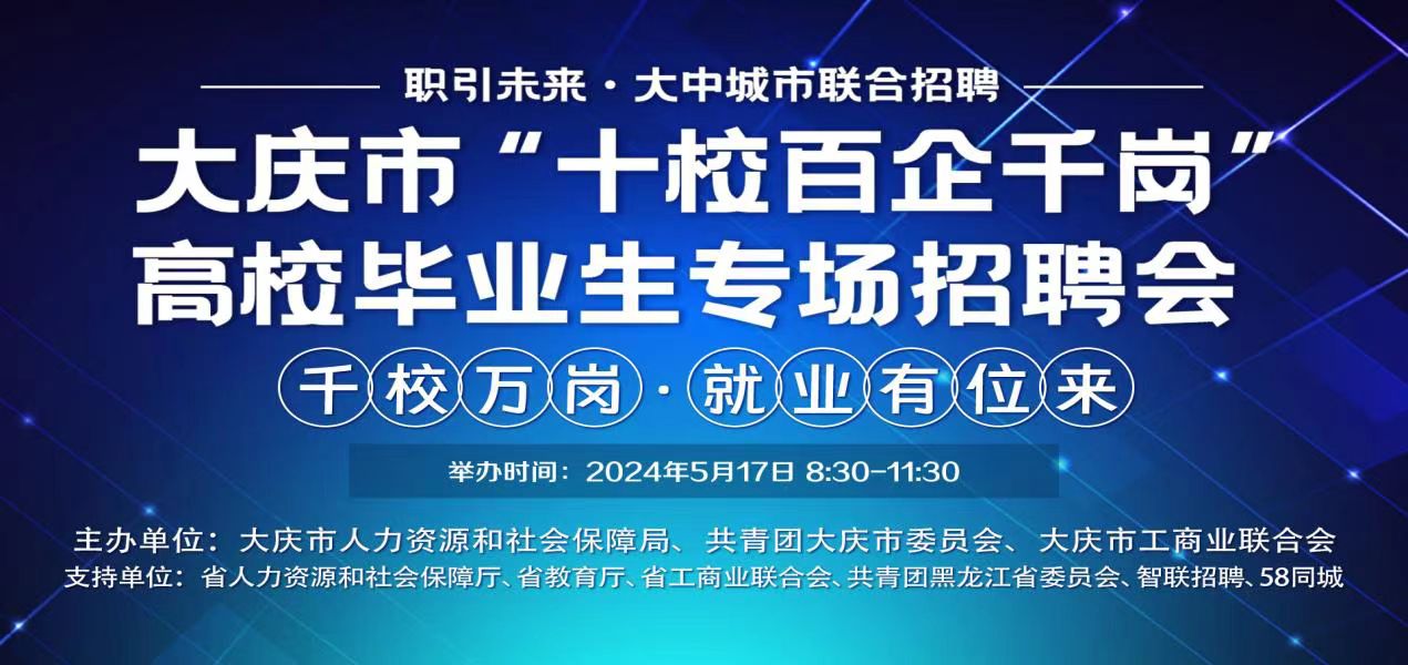2024年5月17日上午8:30分---11:30分,大慶市人力資源和社會(huì)保障局舉辦了“十校百企千崗”高校畢業(yè)生專(zhuān)場(chǎng)招聘會(huì)。